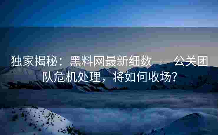 未来,随着信息传播方式的不断变化,公关团队需要更加灵活和创新,才能在危机中立于不败之地。无论是“黑料”的传播,还是公众的舆论,公关团队都需要以事实为基础,以真诚为武器,赢得公众的信任与支持。