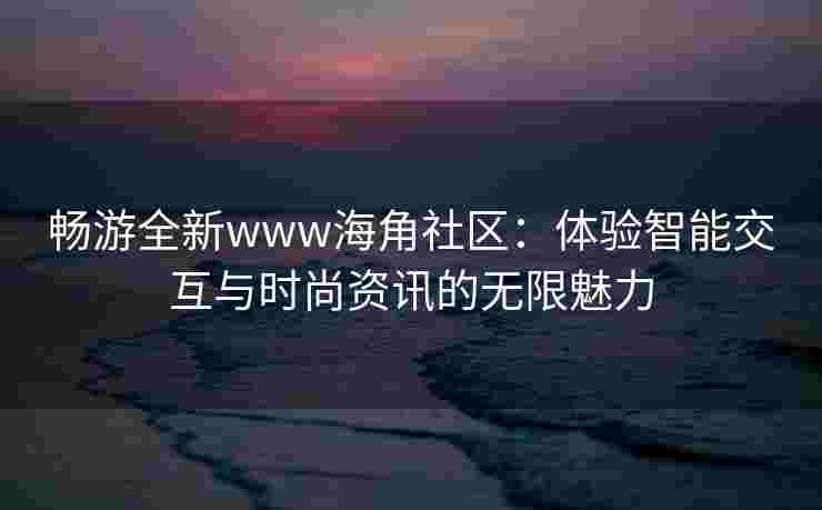在数字化浪潮的推动下,人们的生活方式正在发生翻天覆地的变化。无论是工作、娱乐还是社交,我们都渴望更加智能、便捷和个性化的体验。如今,一个全新的社区平台——www海角社区,正式上线,为用户带来了一场前所未有的智能交互与时尚资讯的盛宴。